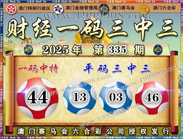 335期开奖结果:34-35-46-31-13-03 特码44