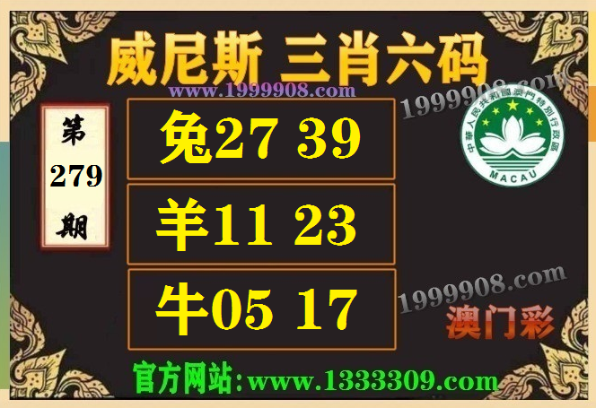 279期:(威尼斯三肖六码【兔27.39、羊11.23、牛05.17