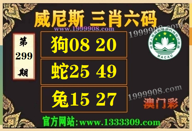 299期:(威尼斯三肖六码【狗08.20、蛇25.49、兔15.27