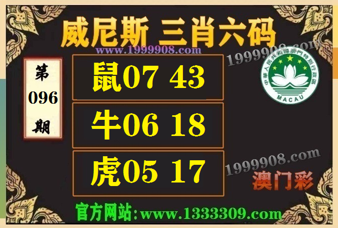096期:(威尼斯三肖六码【鼠07.43、牛06.18、虎05.17